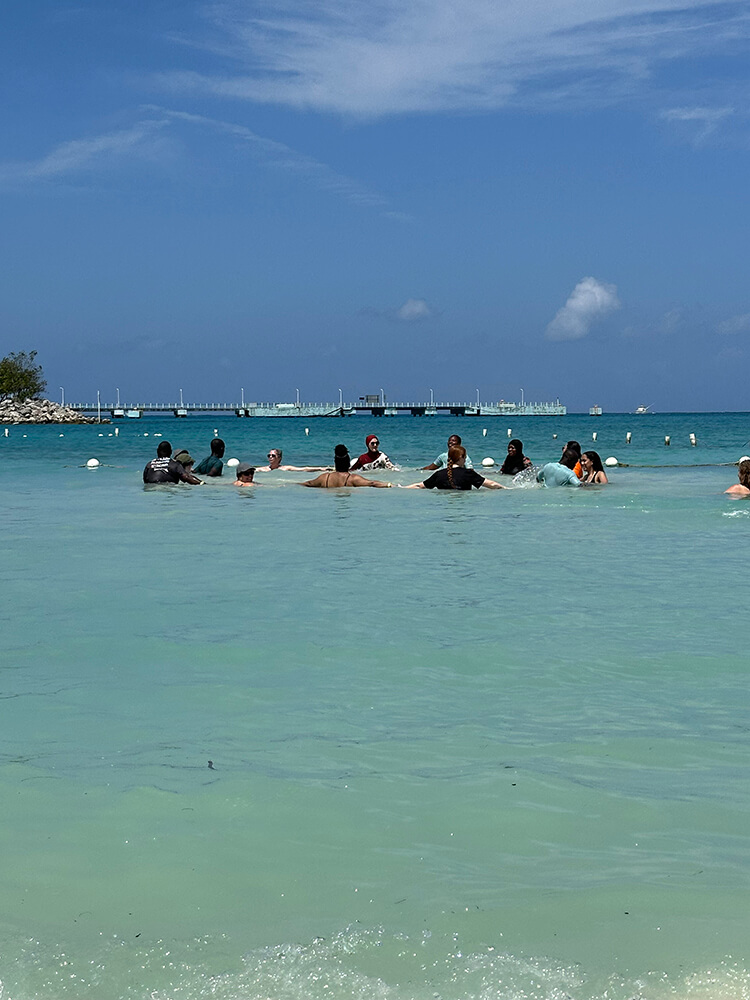 Today was a great day, we started off with a reflection session between volunteers under the gazebo, where everyone explained their “why” and how this trip has impacted them thus far. Then, we accompanied six of the residents and one of their caregivers to Ocho Rios Bay beach. The residents had an amazing time in water; we did several activities with them such as helping them float, play beach ball, frisbee, and went around in circles while singing with them.