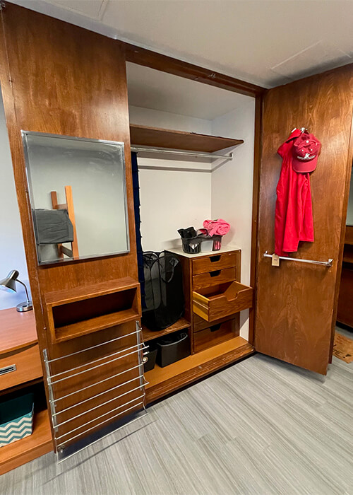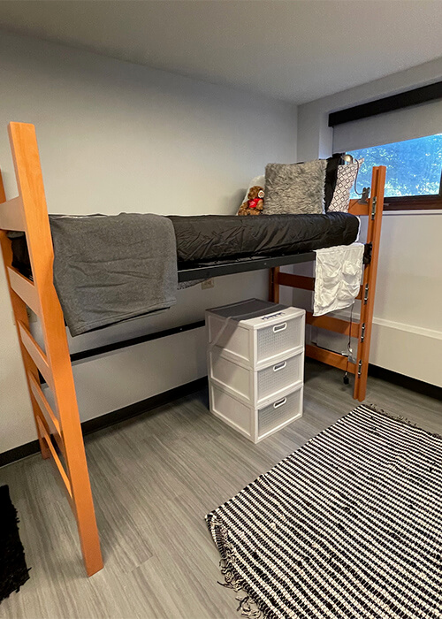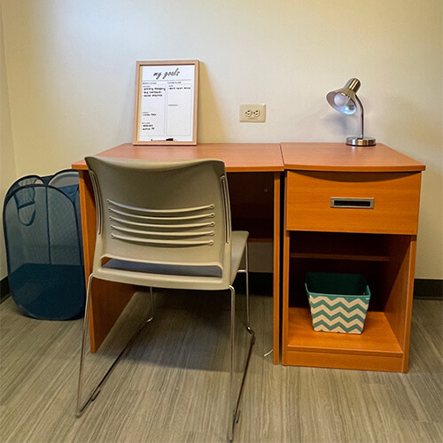 | Furniture | 1 bed, desk, chair, wardrobe, and dresser per resident |